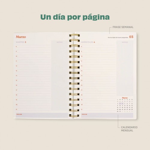 Un día por página con horarios y renglones