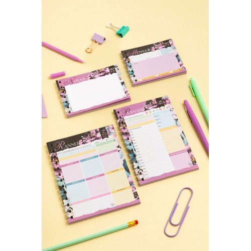 Kit de 4 blocks x40 hojas de 90 gramos cada uno, con la perforación removible de la colección Mi Punto Cero! Trae un block de planner semanal, un block de planner diario, uno de mensajes y uno de notas