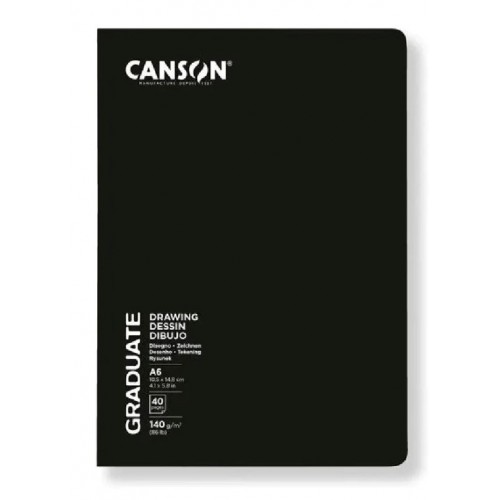 Cuaderno Canson Graduate, hojas papel de 10,5 x 14,8 cm de 140g/m2, blanco, tapa de cartulina abrochadas. Ideal para dibujo. Cuaderno de 40 hojas.