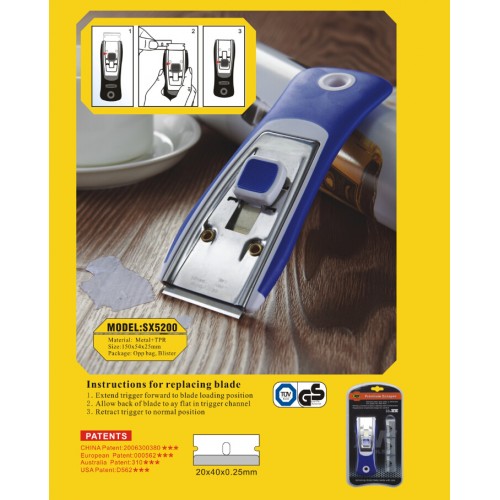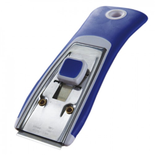 Cutter tipo Rasqueta para trabajos forzados profesionales, con cuerpo de goma y guia metalica. Apto para diversos usos. Hojas de corte de 4cm de ancho. Usar como espatula para raspar diversas superficies como vidrio, madera, chapa, plastico, etc.