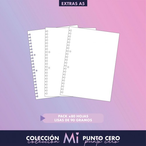Pack x80 hojas LISAS de 90 gramos tamaño A5 (15x21 cm) de la colección Mi Punto Cero Se pueden agregar, sacar y mover de los cuadernos!