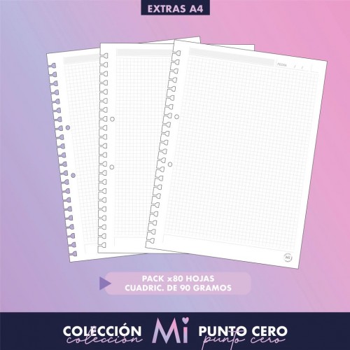 Pack x80 hojas CUADRICULADAS de 90 gramos tamaño A4 (21x29,7 cm) de la colección Mi Punto Cero Se pueden agregar, sacar y mover de los cuadernos!