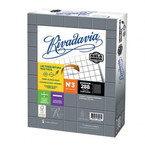 REPUESTO ESCOLAR Nø3 288 hj CUADRICULADO AULA UNIVERSAL RIVADAVIA