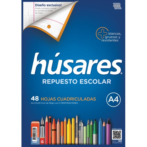 REPUESTO A4 48 hj CUADRICULADO HUSARES
