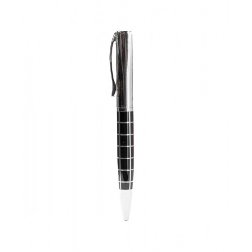 Bolígrafo retractil , tinta azul y cuerpo metálico. Cada unidad viene en un estuche de cartón rígido con logo en hot stamping.