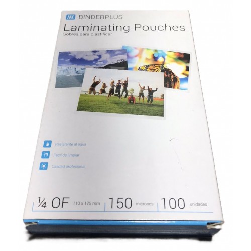 PLASTIFICADO CALIENTE 1/4 OFICIO 110x175mm BINDERPLUS x 100u
