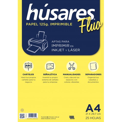 PAPEL ESPECIAL A4 125gr HUSARES FLUO AMARILLO 25 hj