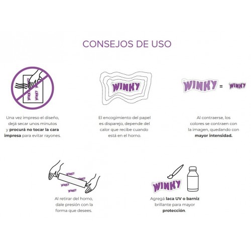 Winky es un material que puede convertir tus ideas en realidad con un toque de calor, un papel que se encoge y se moldea Te permite imprimir tus diseños directamente en el papel antes de encogerlo