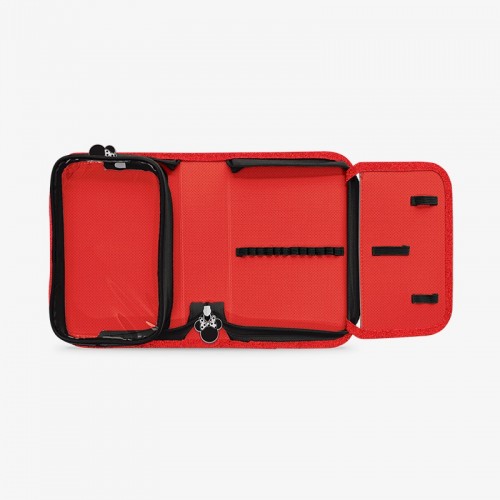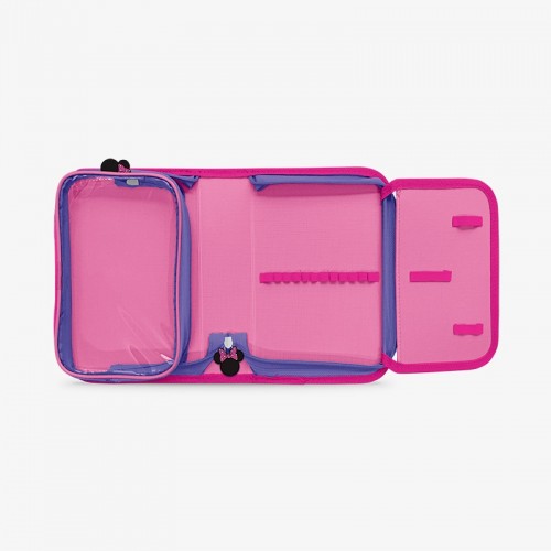 Interior: 1 amplio compartimento transparente con cierre para colocar elementos sueltos, 24 elásticos para acomodar lápices y 3 elásticos más anchos
