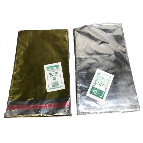 BOLSA POLIPROPILENO CON ADHESIVO METALIZADA 20x30cm x 50u