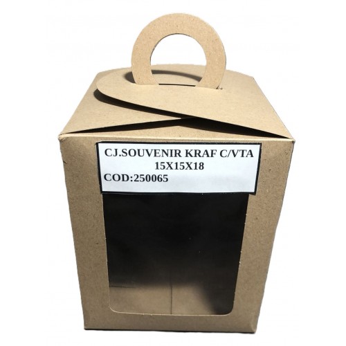 CAJA SOUVENIR KRAFT CON VENTANA 15x18x15cm x 50u