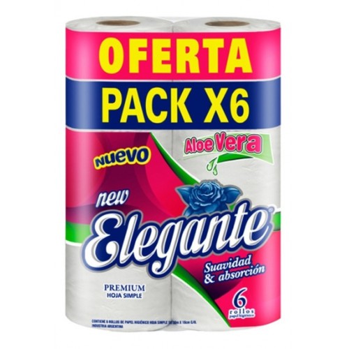 PAPEL HIGIENICO ELEGANTE 1hj ALOE paquete x 6 rollos x 30mts
