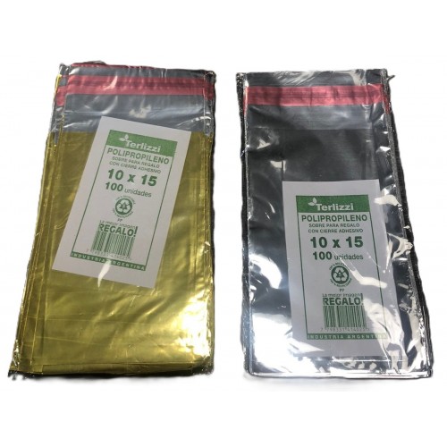 BOLSA POLIPROPILENO CON ADHESIVO METALIZADA 10x15cm x 100u