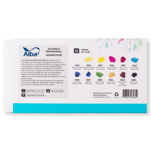 ACUARELA ALBA WATERCOLOR 10ml x 12u