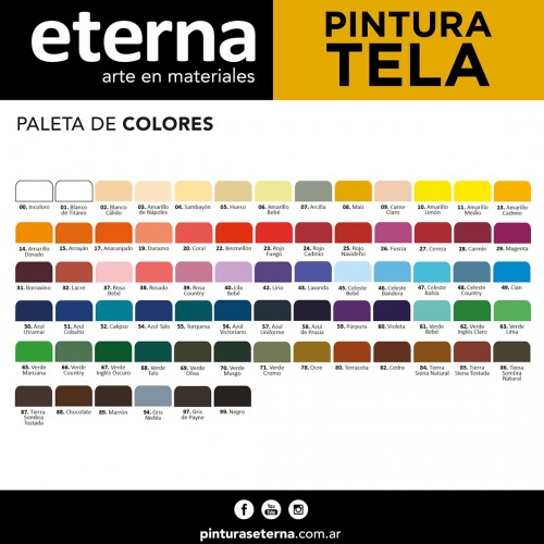 Es una pintura al agua creada para pintar sobre telas de algodon y puede tambien aplicarse sobre cuero natural. Esta elaborada con resinas acrilicas de alta flexibilidad que le otorgan suavidad sin dejar sensacion de acartonamiento sobre las telas