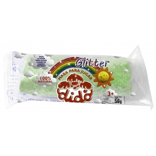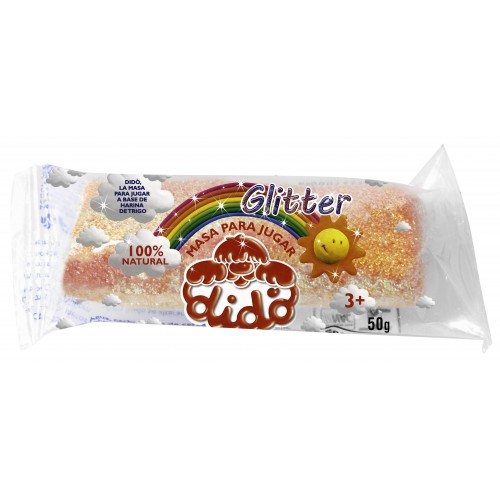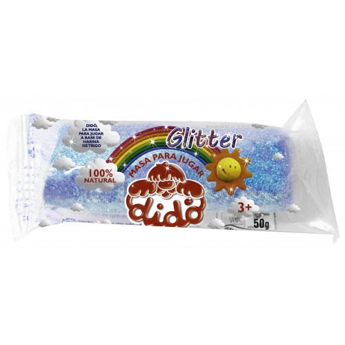 La masa para jugar Dido viene con brillos! Muy blanda, ideal para los niños ms pequeños. Hecha con componentes naturales, no mancha y se remueve facilmente al dejarla secar. Presentacin en 50 gr. No toxica.
