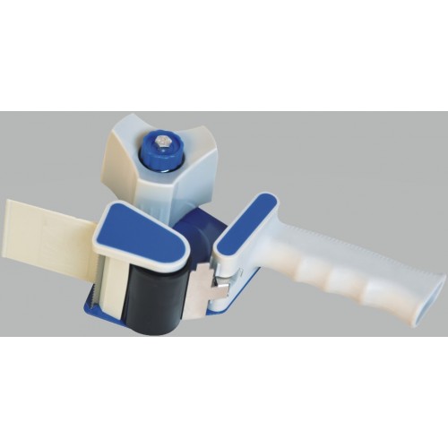 Dispenser para cinta de embalar, hojas de acero, mango ergonómico.