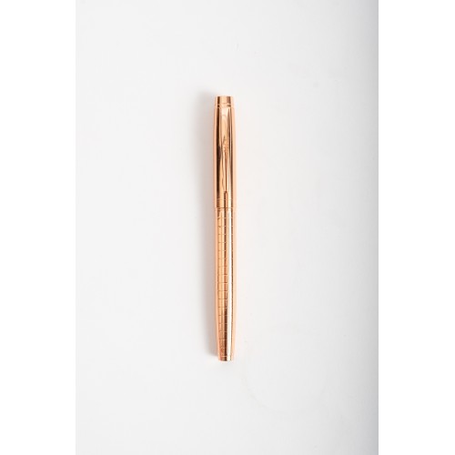 Bolígrafo con tapa y tinta azul con acabado de brillo y textura encuadrille. Incluye un estuche rigido velvet para un toque elegante y sofisticado.