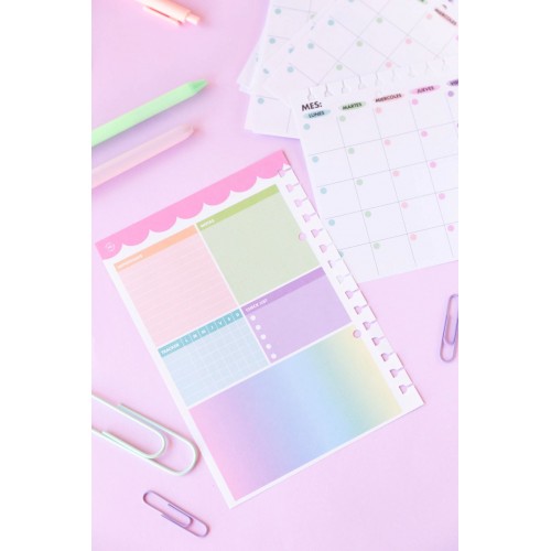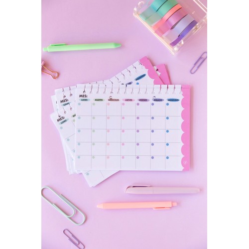 Pack x40 hojas de planificador mensual horizontal de 90 gramos tamaño A5 (15x21 cm) de la colección Mi Punto Cero. Se pueden agregar, sacar y mover de los cuadernos!