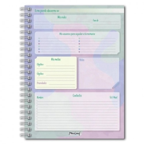 Tamaño: A5/ tapa dura anillado con espiral doble alamnre